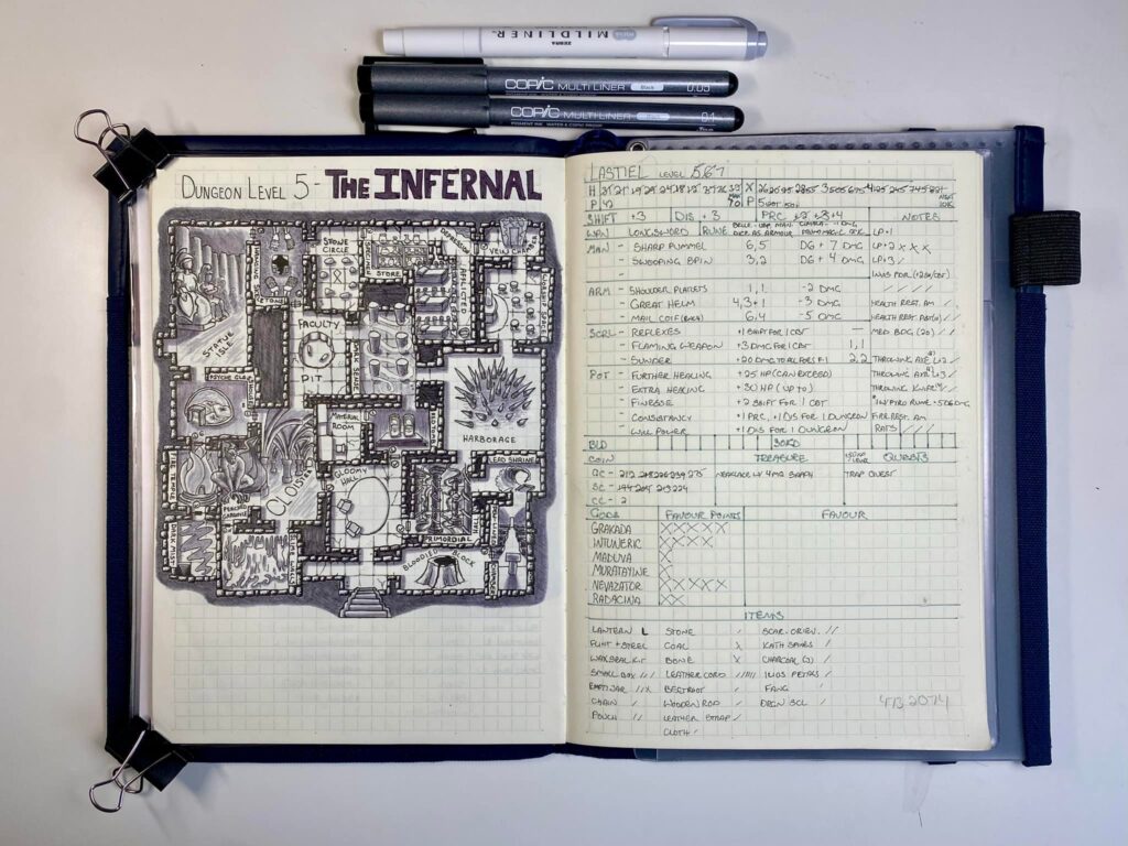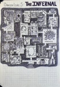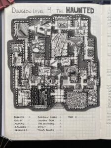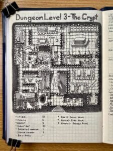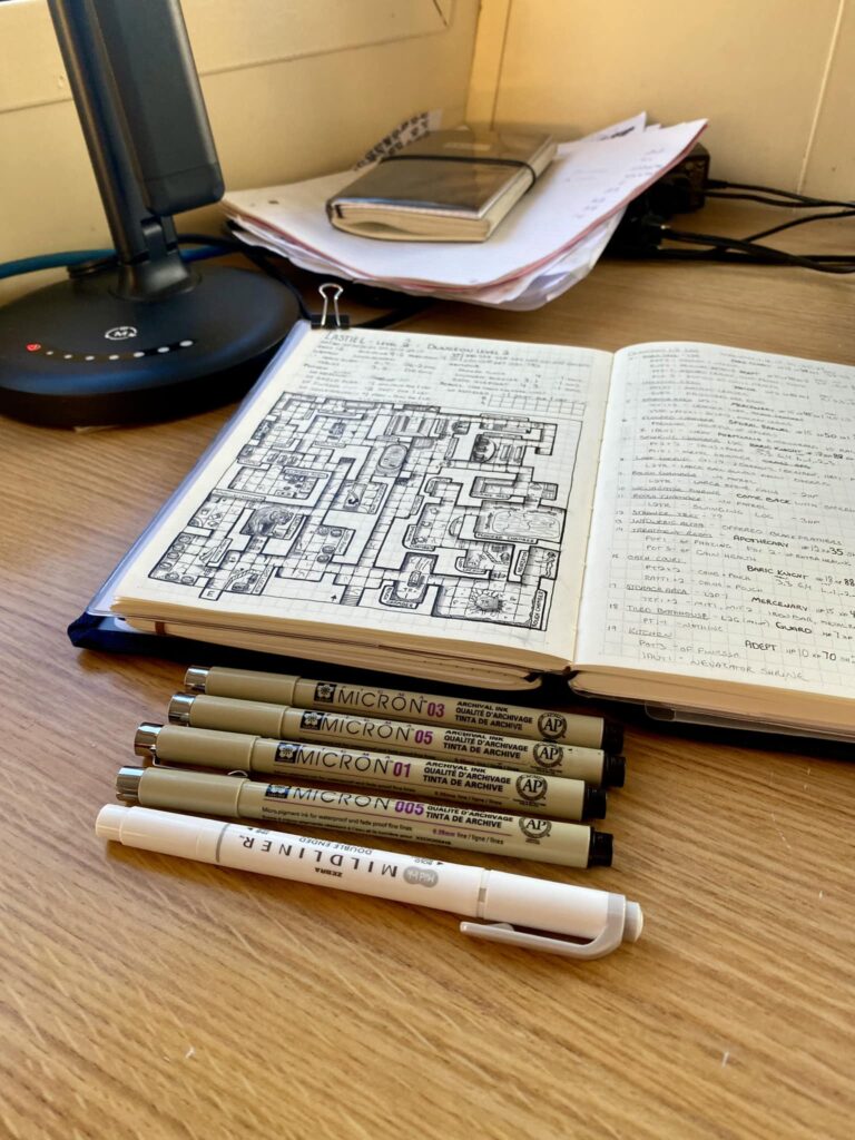 Le jeu excelle à transformer un joueur en cartographe. 2D6 Dungeon permet ainsi de produire des donjons crédibles sans MJ et de rendre le plan central dans l’expérience