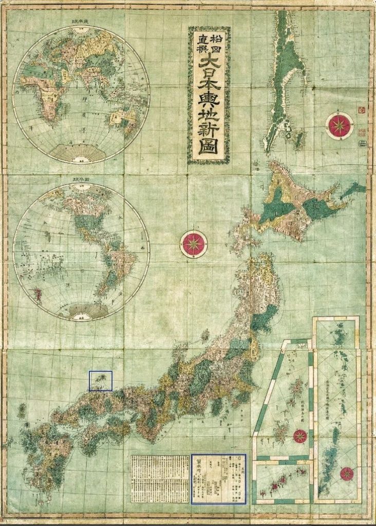 Les nuages stylisés jouent un rôle cartographique sous-estimé : ils délimitent des zones de haute altitude, signalent des régions inaccessibles ou mystérieuses, et servent de transition visuelle entre les espaces terrestres détaillés et les marges de la carte. C’est une convention héritée des cartes japonaises anciennes qui est parfaitement intégrée ici. Dans la carte annotée, ces nuages coïncident généralement avec les frontières entre grandes provinces — une cohérence géographique bienvenue.