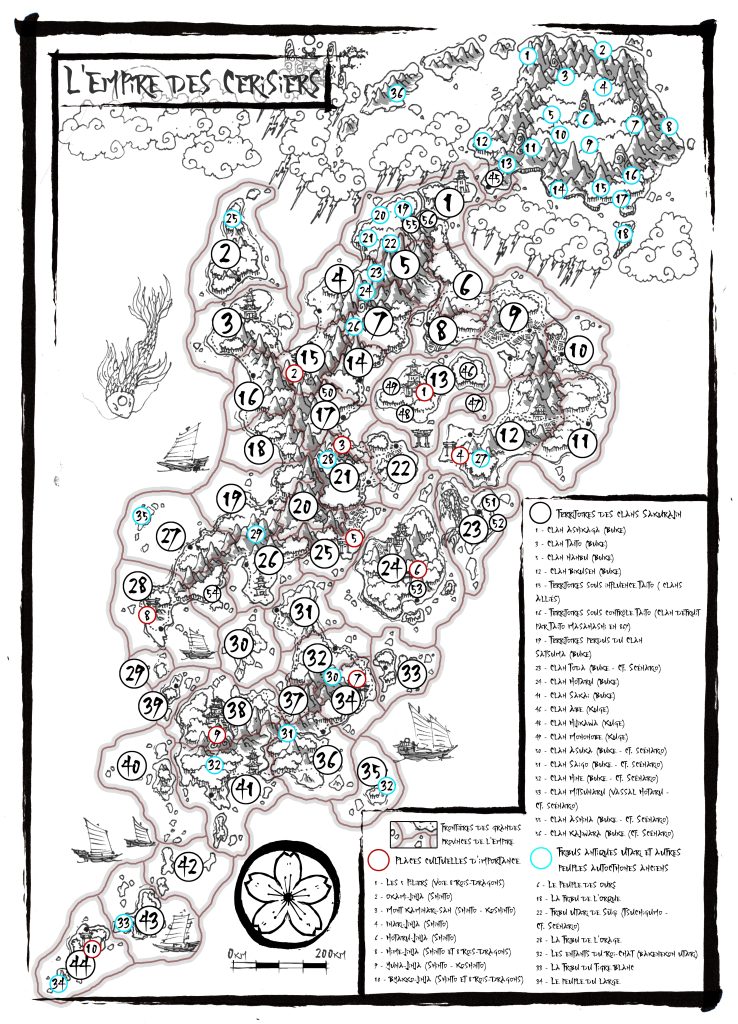 L’Empire des Cerisiers — La carte annotée des clans par Olivier Sanfilippo